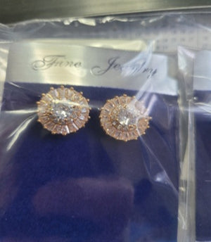 18kt Gold Pl Baguete Multi Stone Stud Earring