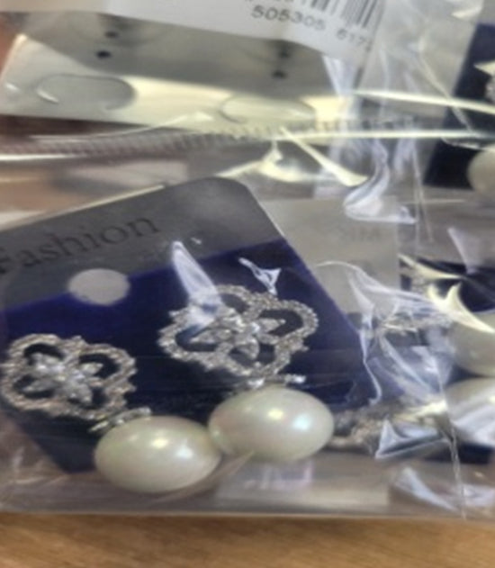 18kt Whit Pl Flower Stone Pearl Drop Earring