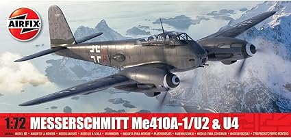 - Airfix Aircraft Set: Build this iconic Messerschmitt Me410A-1/U2 & U4 model with intricate details and precise scaling, designed for beginners and advanced modellers alike. Please note that this model set does not include paint or glue which are required for assembly