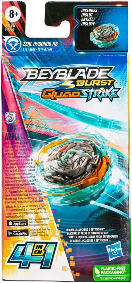 Beyblade Burst QuadStrike, Single Pack Zeal Nyddhog N8, Toy for Children from 8 Years