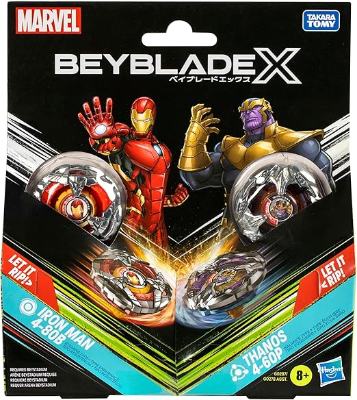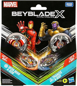 - RUN THE GAUNTLET: Tony Stark, the Invincible Iron Man, launches into battle versus the mad Titan Thanos in your Beyblade X Beystadium in this multiverse-spanning collaboration between Marvel and Beyblade X spinning tops