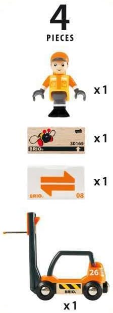 - Goods and cargo are coming and going with trains and trucks from all directions. Is there too much to handle? No, not with Use this detailed forklift and helpful driver so just lift the loads up, down, off and on trains and trucks with ease so a ideal accessory to the wooden train set