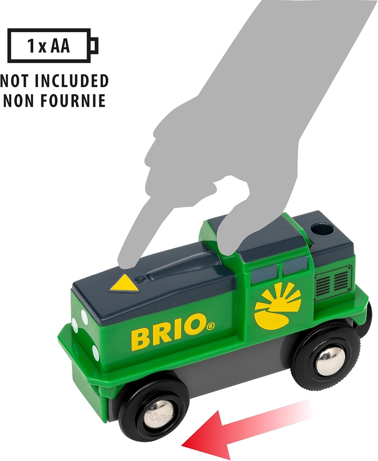 BRIO World Battery Powered Farm Train Engine for Kids Age 3 Years Up - Wooden Railway Add On Accessories