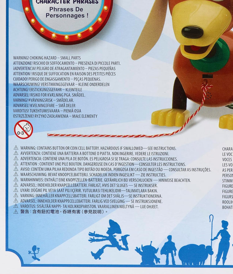 - Interactive Playtime: Pull Slinky Dog along on his wheels and watch as his spring body stretches out. Push the button to hear over 15 character phrases for interactive fun.
