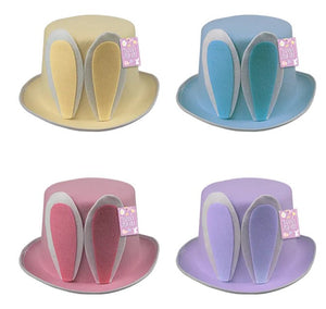 Enjoy Easter celebrations with this unisex Easter top hat. Featuring a pastel coloured polyester felt with attached felt ears and a white trim, this hat is a great alternative to an Easter bonnet and would look great worn to Easter parties.