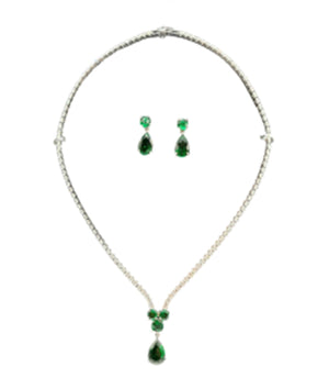 Emerald Rnd Cubic Link Oval Drop Triple Set