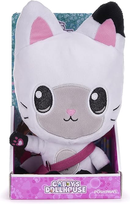 Posh Paws 50105 Gabby's Dollhouse 25cm (10-inches) Pandy Paws Character Soft Plush Toy, White