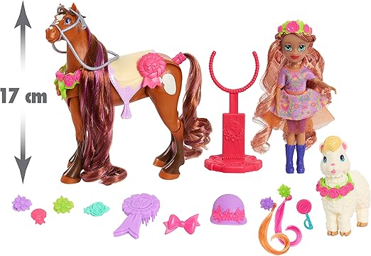- This 20-piece riding set includes: 5" Valentina doll, 7" Charra horse, 4.5" Loli Lama figure and accessories.