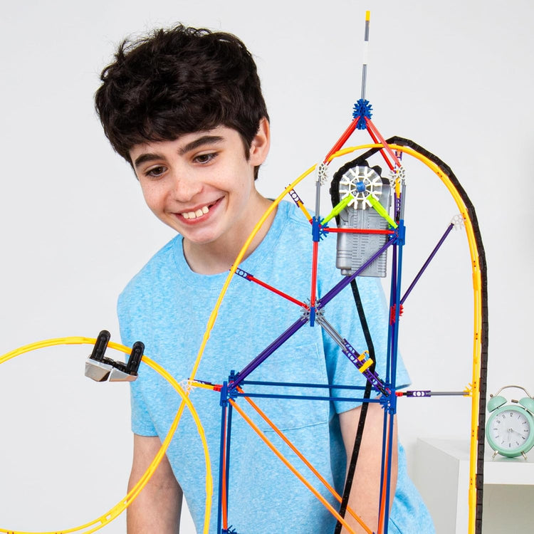 - BOUW EEN WERKENDE ACHTBAAN: Met de 448 speelstukjes uit de Amazin' 8-bouwset van K'NEX kun je een echt werkende achtbaan bouwen. Kelder, draai, duikel en daal met de gemotoriseerde kettinglift waarmee je het karretje van de achtbaan in allerlei bochten kunt sturen voor urenlang interactief speelplezier.