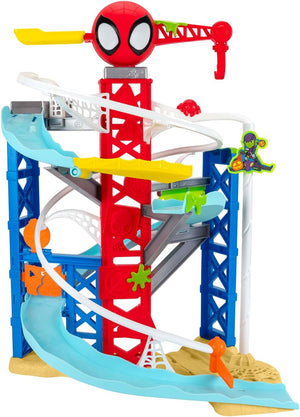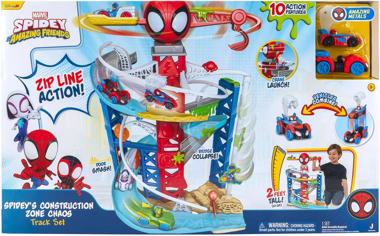 MARVEL Spidey and His Amazing Friends Construction Zone Chaos Track Set - 2-Foot High Dual Race Track with Zip Line, Play Zones, and Exclusive Vehicles