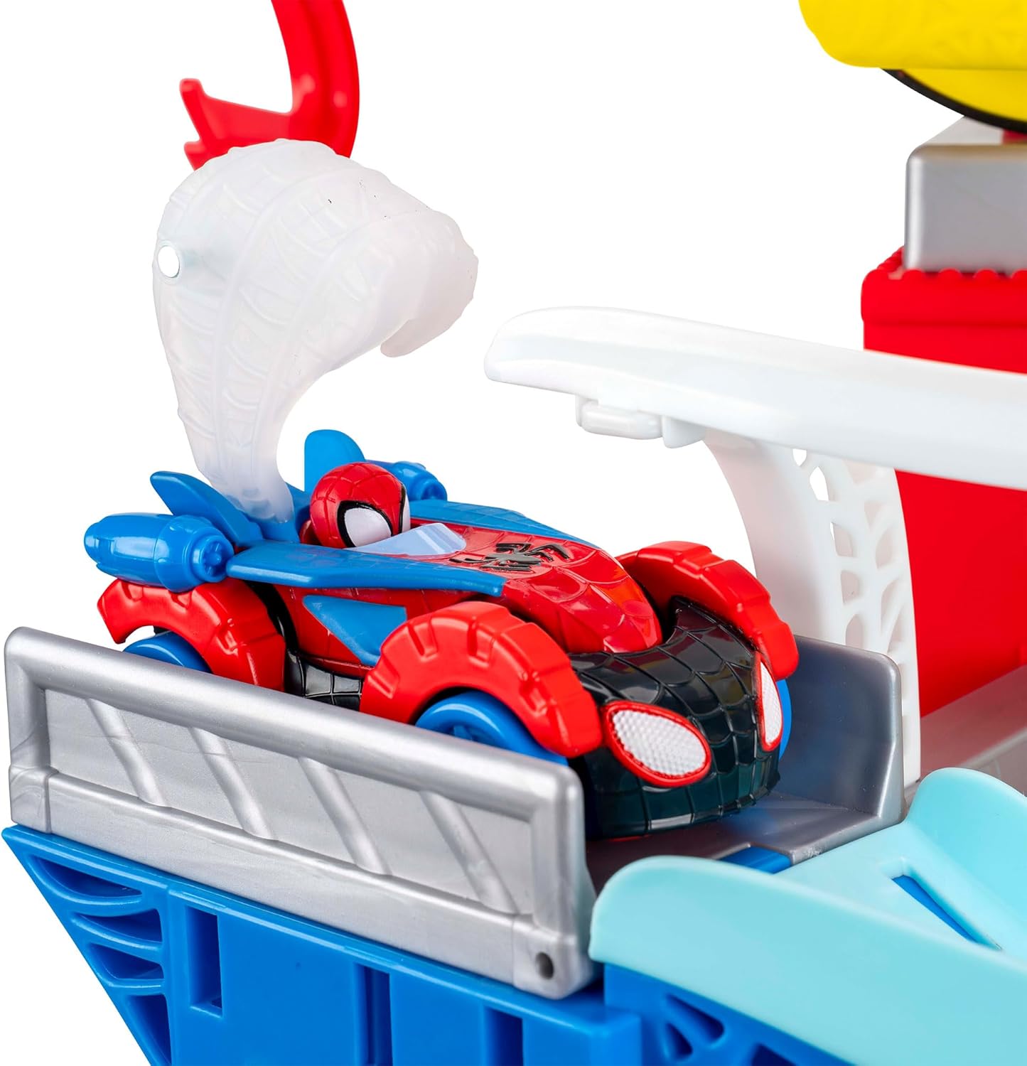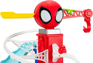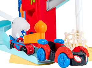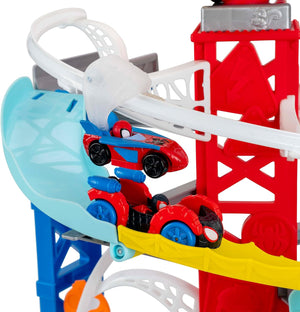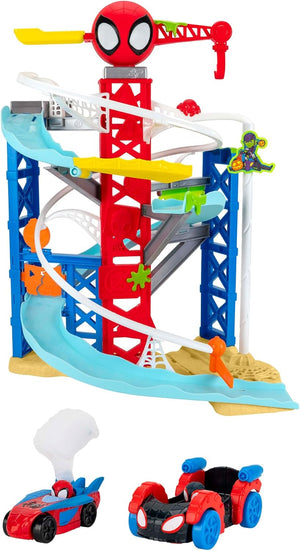 - TWO TRACKS: 2-foot high race track features two unique courses for Spidey and Spin.