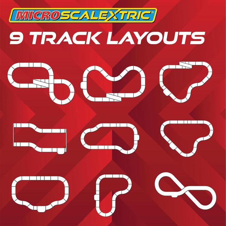 - Easy Kids' Play Vehicles: The Micro Scalextric Range features Plug & Play technology making it quick and simple to assemble & disassemble, the ideal race tracks for boys and girls. These small cars Scalextric sets requires minimal storage space and when set up covers an area of 81 x 120 cm giving a track length of 408 cm