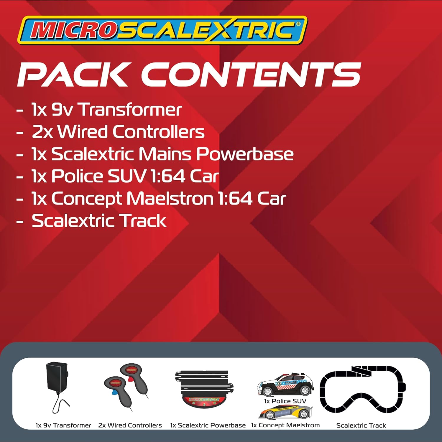 Micro Scalextric Car Race Track Sets for Kids Age 4+ - Law Enforcer Track Builder Construction Set, Mains Powered Electric Car Track, Slot Cars Kids' Play Vehicles - Mini Toy Racing Tracks for Boys