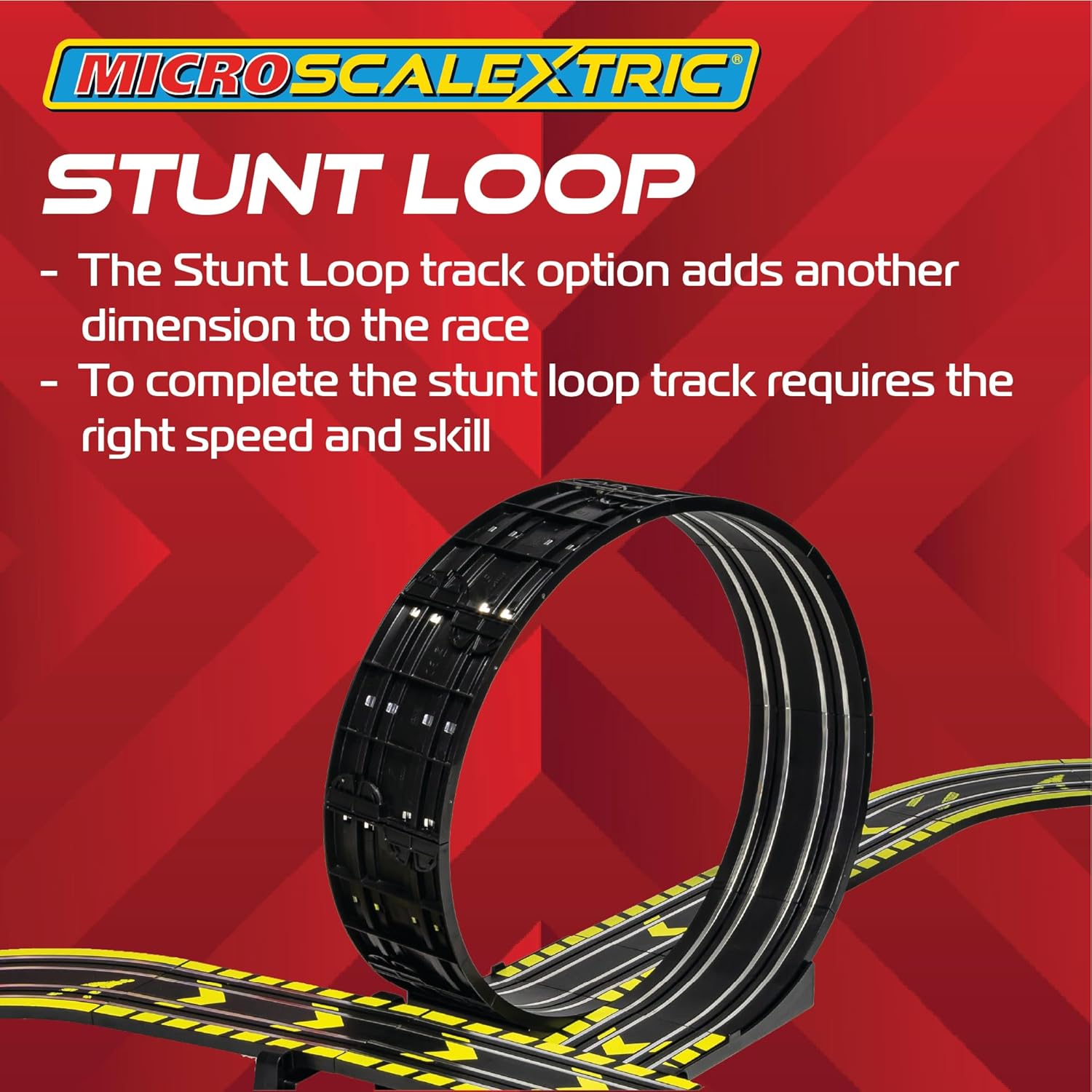 - Toy Car Track Contents: 2 x Character Scalextric cars - Police SUV Vs Concept Maelstrom, 4.08m of race car track including Stunt Loop and 90 degree Stunt Ramp, Mains Powerbase, Transformer and 2x Speed Limiting Controllers. Toy car sets ideal as a car gift or birthday gifts for boys & girl racers