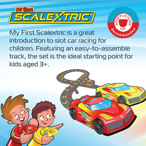 - Racing Track Sets for Kids: A great introduction to the world of Scalextric featuring easy-to-assemble figure-of-eight race tracks for boys. My First Scalextric sets for kids are the ideal toddler toy cars for younger children aged 3+. The two sci-fi toy cars for kids and their adjustable power hand-controllers are colour coded in red and yellow to match chevrons on the circuit
