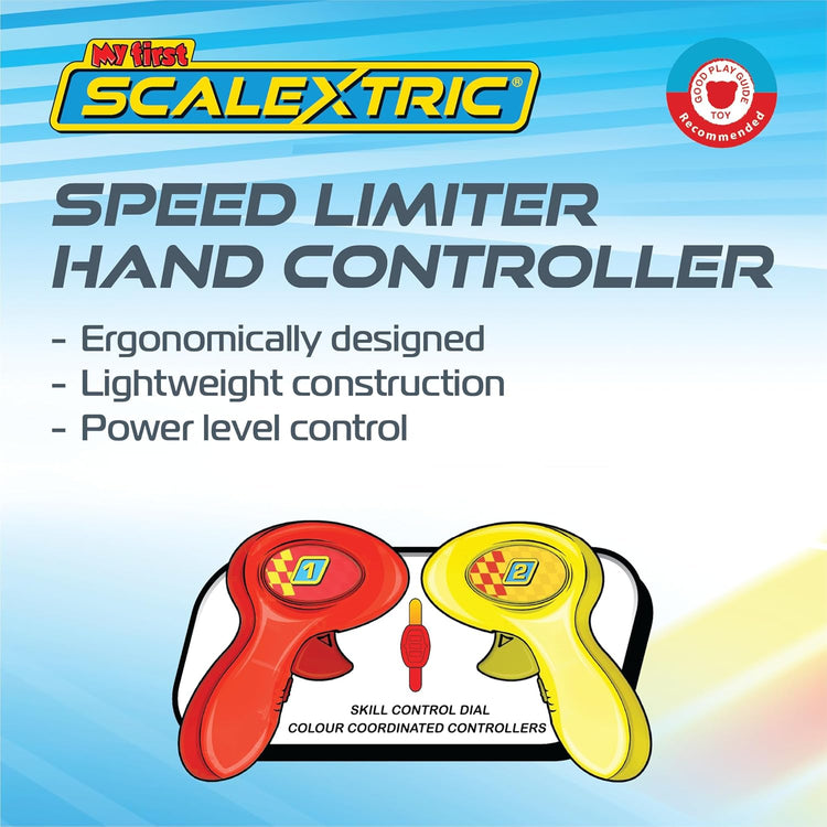 - Easy Power Adjusting Speed Track: The My First Scalextric hand controller makes it easier than ever to adjust the speed settings for your car race track. Simply push the dial to your preferred speed and let the racing begin! The lightweight hand controllers are built in with 4 different speed options so kids and toddlers can have fun without crashes