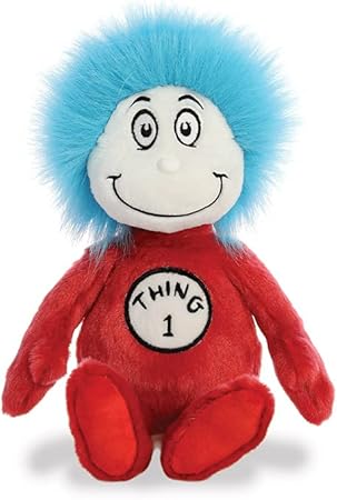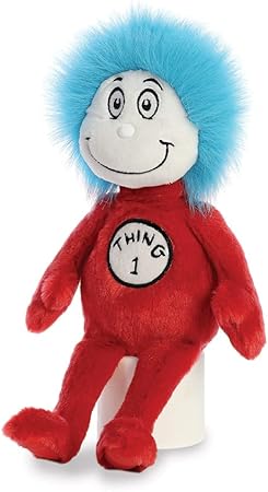 Now you can show your love for the loveable character with a little help from this wonderful plush. Thing 1 has a super soft red plush material body, blue hair with floppy legs and arms. He has beans in his bottom which allows him to sit perfectly with embroidered accents.
