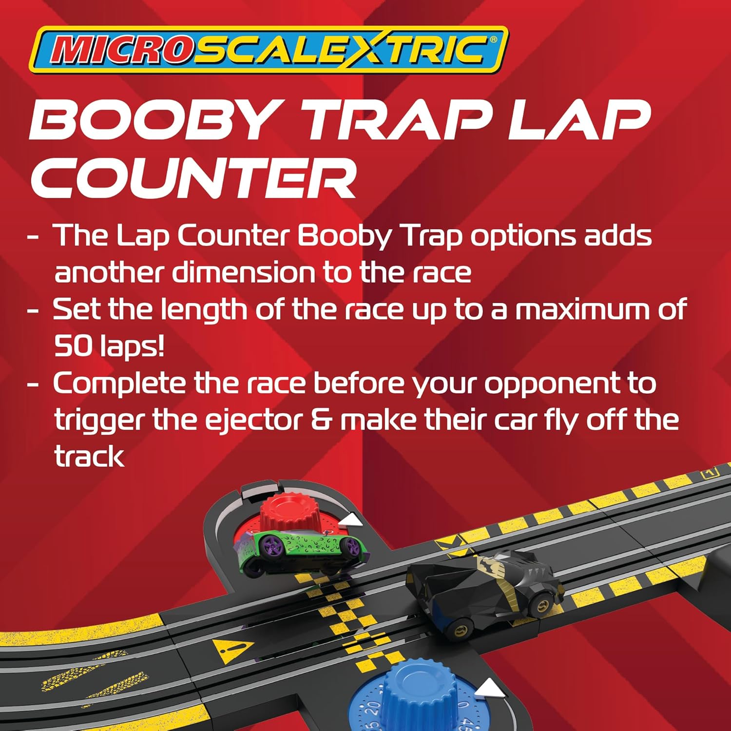 - Toy Car Track Contents: 2x Scalextric cars - 1x Batman car, 1x The Riddler car, 1x 3.5m Track Set, 1x Lap Counter Booby Trap, 1x Battery Powerbase (Batteries Not Included), 2x Speed Limiting Wired Controllers and 1x Trackside Graphic. Toy car sets ideal as a car gift or birthday gifts for boys & girl racers
