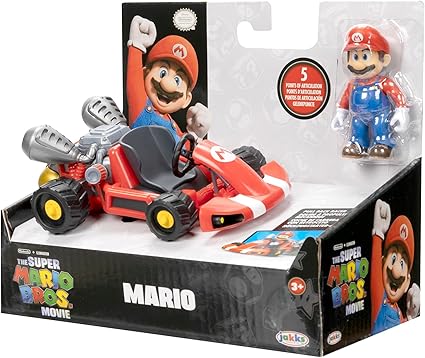 - The Super Mario Bros. Movie 2.5” Mario figure with pull back racer