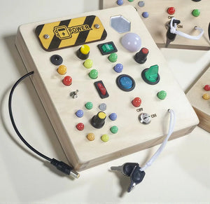 - Montessori-Inspired Busy Board Design – Promote early learning through lights, switches, buttons, and toggles that support sensory stimulation and logical play for toddlers