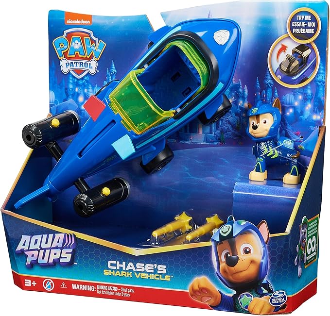 PAW Patrol Aqua Pups, Chase Transforming Shark Vehicle With Collectible Action Figure, Kids’ Toys for Ages 3 And Up