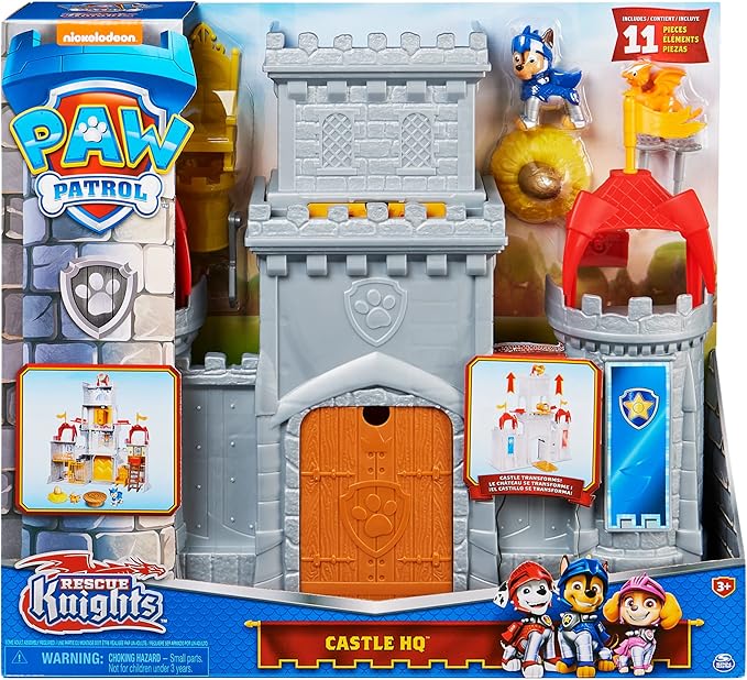 Paw Patrol, Rescue Knights Castle HQ Transforming 11-Piece Playset with Chase and Mini Dragon Draco Action Figures, Kids’ Toys for Ages 3 and up