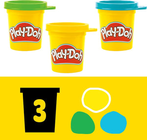 - 3 PLAY-DOH CANS FOR LITTLE HANDS: 56 gram cans of blue, green and yellow modelling compound come with tabs on the lids to make it easier for little hands to pop open (contains wheat)