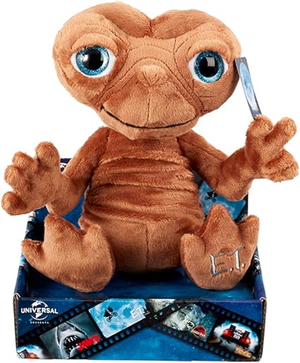 - CLASSIC ET TOY MEMORABILIA: Adorable is just the beginning! This ET teddy perfectly captures not only the look of ET but the entire spirit of this much-loved character from the classic 80s film. This ET soft toy features his iconic pointed finger, ET embroidered on his foot, and a platform box featuring iconic Universal movies. It’s a must-have addition to any film memorabilia collection.