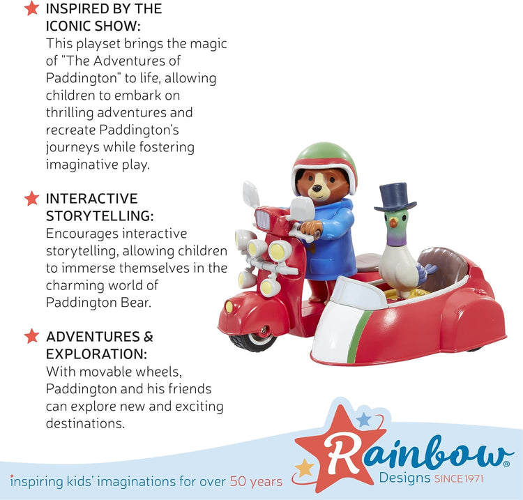 Rainbow Designs Paddington Bear Playset - Paddington Bear's Bike and Side Car from Award-Winning TV Series with Movable Wheels for Adventurous Explorations