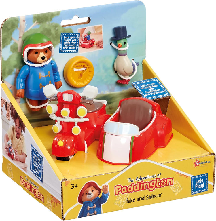 - THE COMPLETE SET: This comprehensive playset includes Paddington Bear, his trusty bike, and a sidecar. The sidecar is roomy enough to accommodate Paddington Bear's friends, Pigeonton and Lucky, ensuring everyone is part of the excitement.