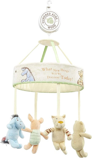 - CHARMING CHARACTERS: Delight your little one with the loveable Winnie the Pooh and his best friends Piglet, Tigger, and Eeyore. These charming plush characters rotate, captivating your baby's attention and bringing a touch of charm to any nursery.