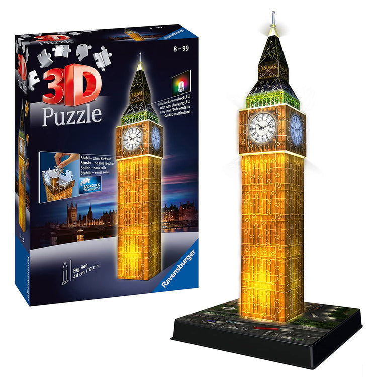 Ravensburger Big Ben 3D Jigsaw Puzzle for Adults and Kids Age 8 Years Up - Night Edition Big Ben Night 3Dwith LED Lighting - 216 Pieces - No Glue Required