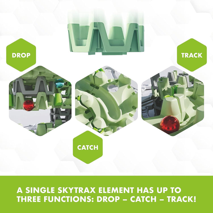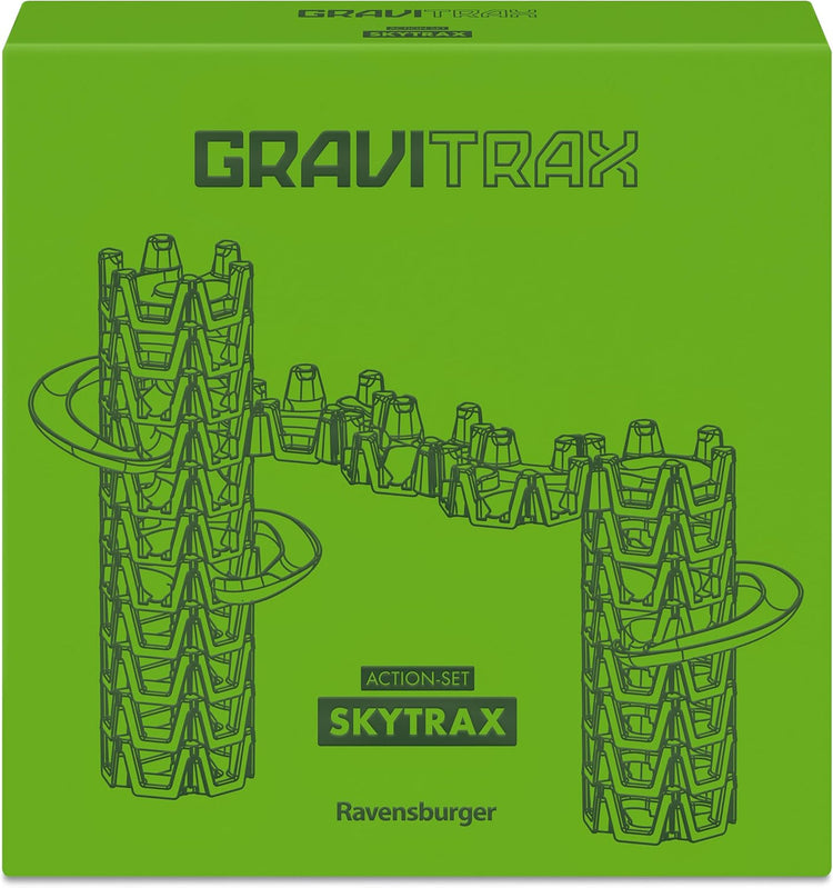 - The Skytrax Action Set includes over 120 diverse elements. The included construction plans for example tracks make it easy to get started with the marble run system. The action element Scoop is a true highlight, adding dynamic movement and plenty of excitement to the marble run.