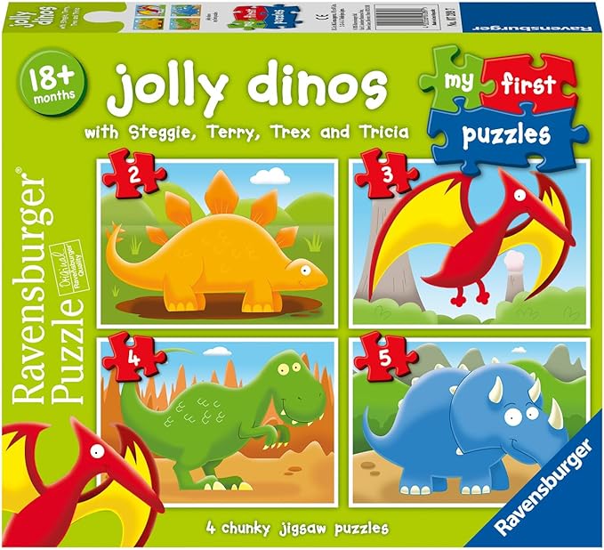 Ravensburger Jolly Dinosaurs My First Jigsaw Puzzles (2, 3, 4 and 5 Piece) Educational Toys for Toddlers Age 18 Months and Up