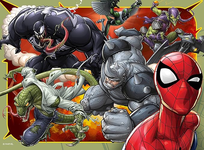 - This set of 4 colourful, action-packed, dynamic jigsaw puzzles show Spider-man, Spider-girl, Kid Arachnid and Spider-Gwen fighting off the evil villains Rhino, Green Goblin, Venom, Lizard and Vulture. An Amazing Spiderman Toy