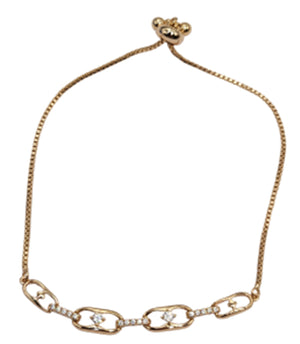 Rose Gold Wrist 18kt S Plate Cubic Multi Link Oval Tie Bracelet