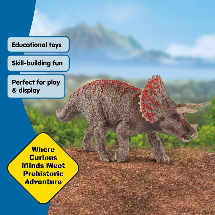 - HOURS OF IMAGINATION AND ENTERTAINMENT FOR KIDS - The triceratops, a carefully designed toy from the schleich prehistoric DINOSAURS series, encourages safe and creative pretend play for children, either as a standalone toy or part of a larger dinosaur collection.