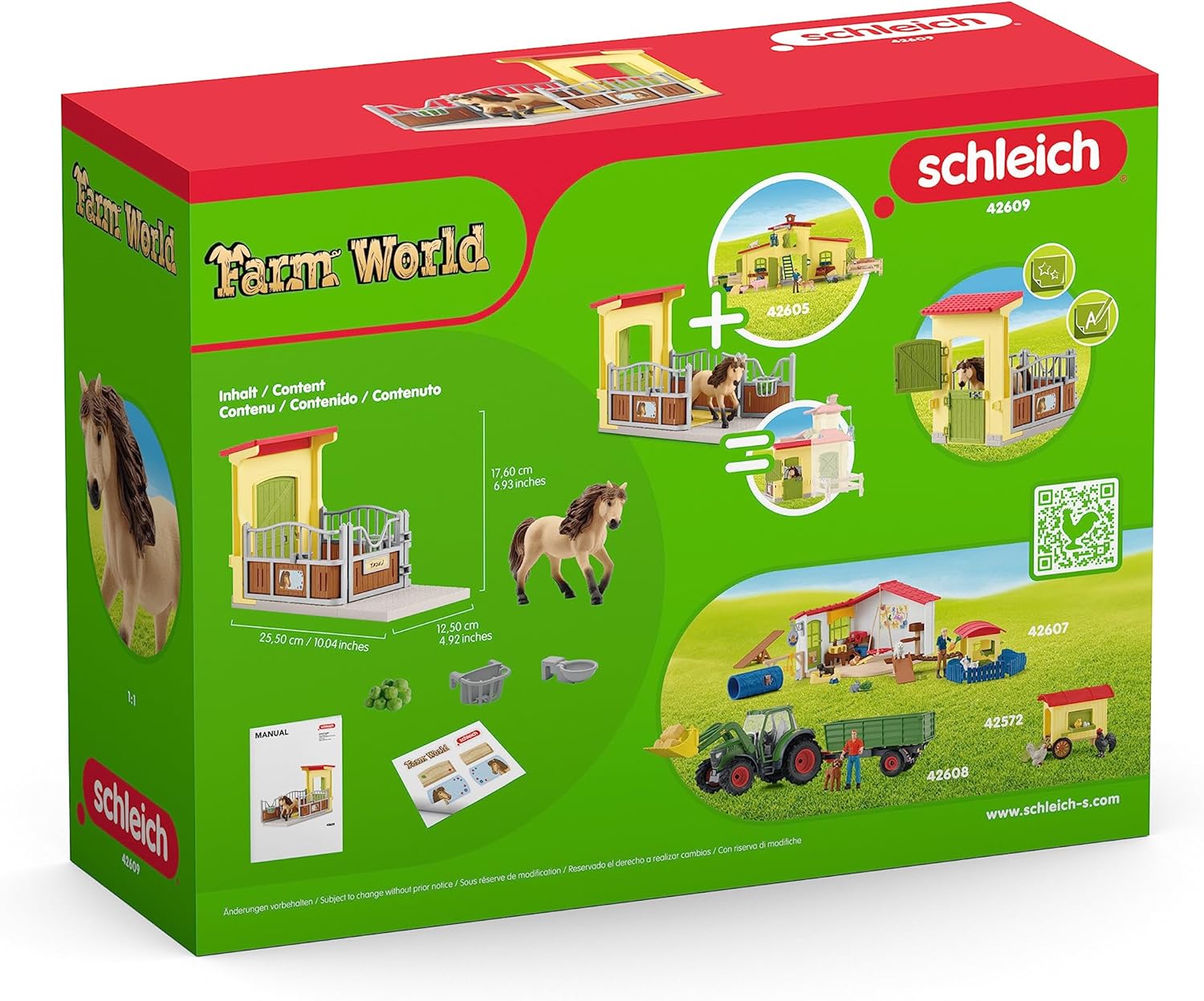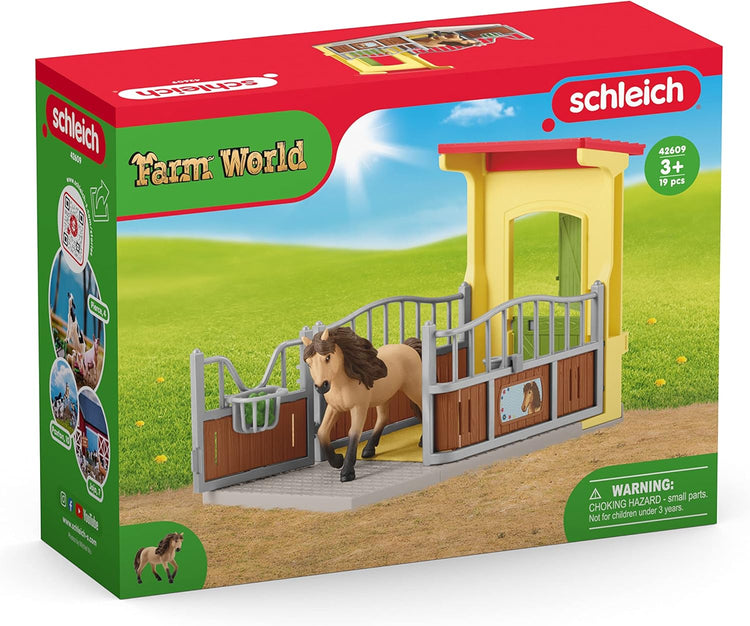 SCHLEICH 42609 Pony Box with Iceland Pony Stallion, from 3 years, FARM WORLD - Playset, 4 pieces