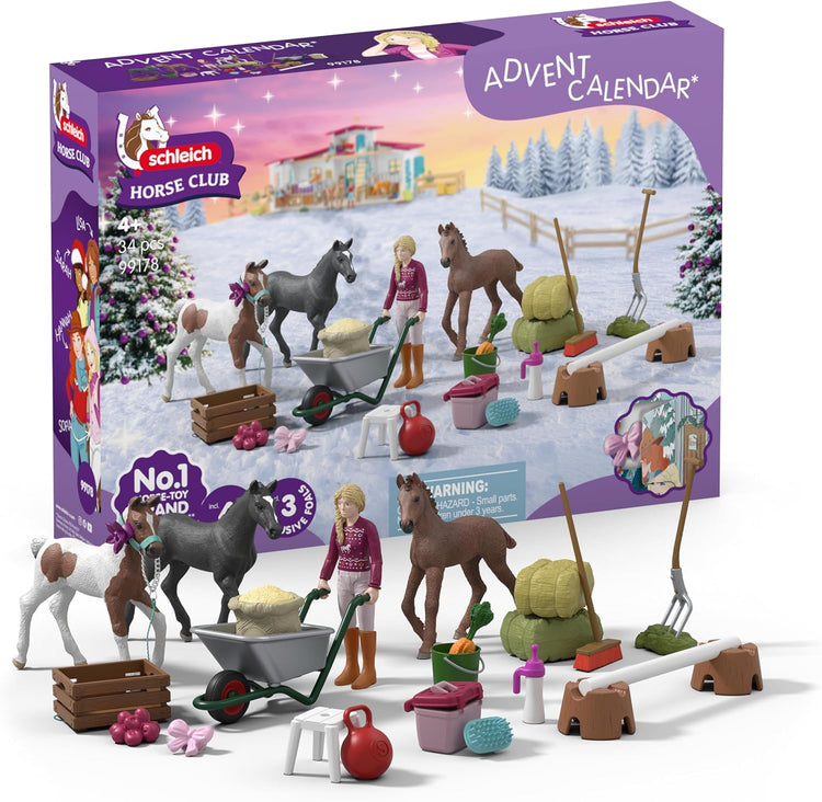 SCHLEICH Horse Club - 2025 Horse Club Advent Calander - Includes 31 Toys Including Poseable Figurine, 3 Horses and Cute Accessories - Holiday Event Calendar for Christmas - Kids Ages 5+ | 99178