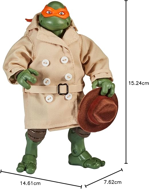 This Ninja Elite 6” Michelangelo in Disguise figure is straight from the 1990 Teenage Mutant Ninja Turtles live action blockbuster film! Michelangelo is dressed in his iconic fedora hat and trench coat with buttons, belted waist, and buckle details. He stands 6" tall and is highly poseable with 34 points of articulation for realistic super Ninja action! Collect all the Ninja Elite Turtle figures inspired by the hit movie!
