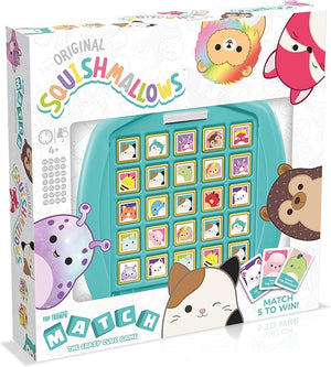 Top Trumps Match Squishmallows Board Game, match 5 Lola the Unicorn, Daxxon the Alien or Cam the Cat in a row to win, perfect for travel, gift for ages 4 plus