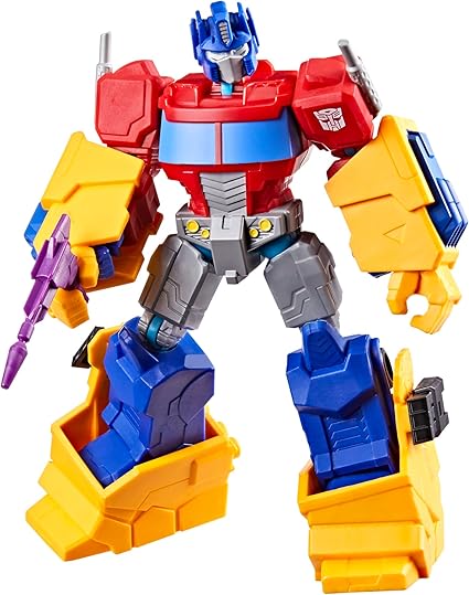 - INCLUDES 3 MEGATRON PARTS: Transformers Optimus Prime robot action figure comes with purple Megatron spinning mega cannon and 2 blasters, plus 5 armor-up accessories, including an energon axe