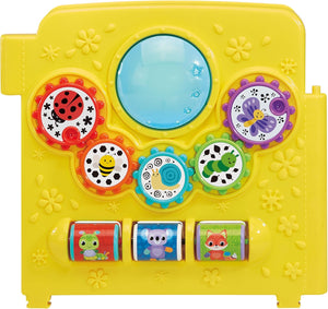 - ENGAGING DEVELOPMENTAL FEATURES: Includes a driving zone, shape sorter, peek-a-boo fun, turning gears, rollers, and a see-through window for stimulating sensory exploration.