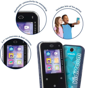- BLUETOOTH MESSAGING AND GAMES: This phone toy has built-in Bluetooth for games, messaging, photos and more between two KidiZoom Snap Touch devices