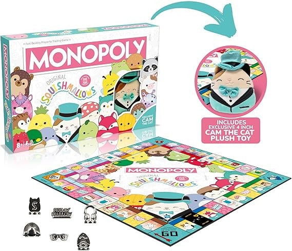 - PERFECT FOR SQUISHMALLOWS LOVERS: This new Squishmallows edition of Hasbro's classic board game Monopoly is perfect for 2–6 players and makes a great gift for fans aged 8 and up