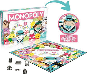 Winning Moves Squishmallows Monopoly Board Game Collectors Edition, Play with Fifi the Fox, Rosie the pig and Brock the Bulldog, includes an exclusive 4" Cam the Cat plush, great gift for ages 8+